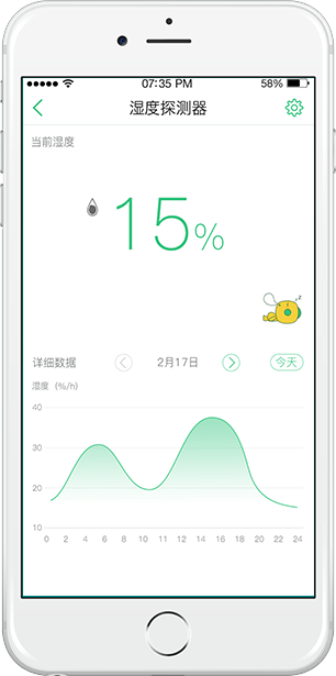 سنسور دما و رطوبت را در اتاق کودک قرار دهید تا تغییر دما و رطوبت را به صورت لحظه ای تشخیص دهد، در صورت انحراف از منطقه راحتی، به طور خودکار قسمت مربوطه را فعال می کند. لوازم خانگی. به عنوان مثال، هنگامی که رطوبت هوا کم است، مرطوب کننده متصل به طور خودکار روشن می شود، به طوری که کودک دیگر دچار خونریزی بینی نمی شود.